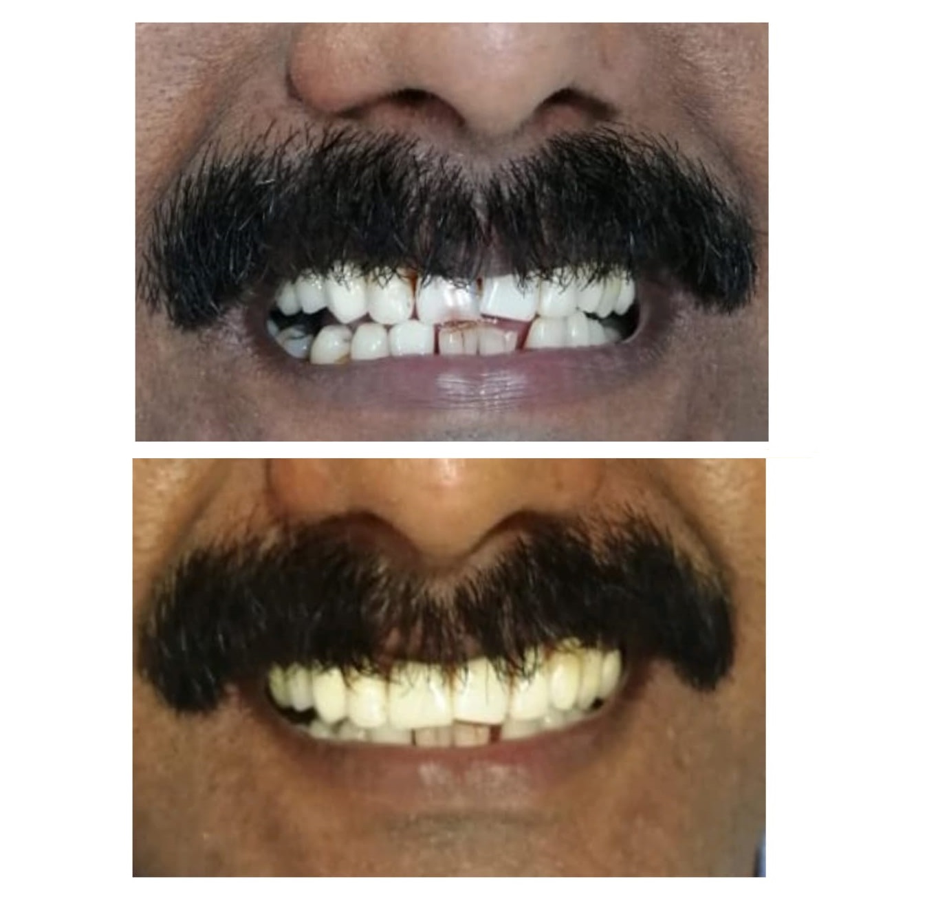 With the help of laminates and veneers, composite restorations, implants, teeth whitening, we do smile makeover. So smile makeover treatment varies from person to person, face to face, and also varies with dental architecture. Lot of measurements of your face, teeth, shape of your teeth, alignment and spacing between teeth, midline, lip line, chipping of teeth, is taken into consideration.